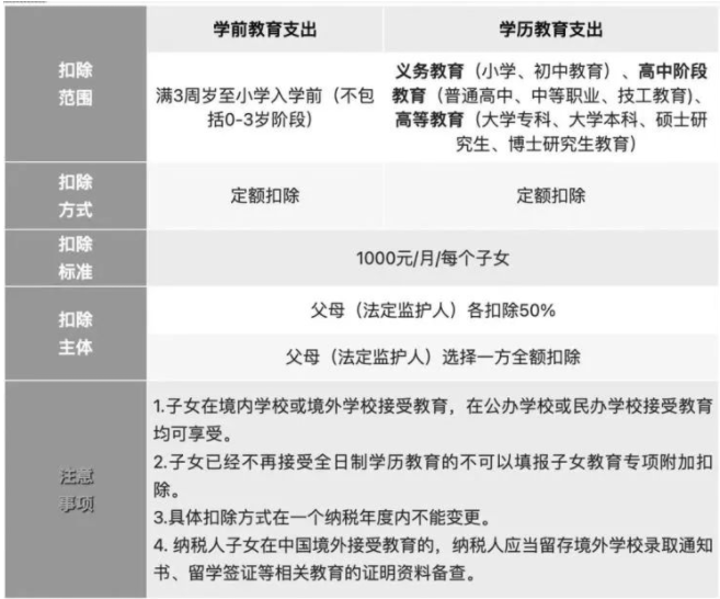 子女接受全日制學(xué)歷教育以及學(xué)前教育(子女年滿3周歲的當(dāng)月至小學(xué)入學(xué)前的教育)的納稅人每個(gè)子女每個(gè)月可以定額扣除1000元。子女教育專項(xiàng)附加扣除可以選擇由父母一方全額扣除,也可以選擇父母每月各扣除標(biāo)準(zhǔn)的50%。
