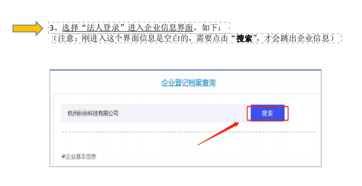 (注意:剛進(jìn)入這個(gè)界面信息是空白的,需要點(diǎn)擊搜索”,才會(huì)跳出企業(yè)信息)